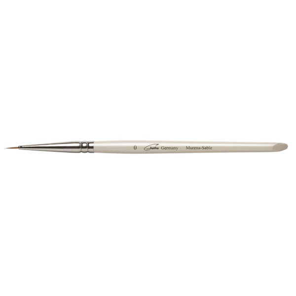 Finest sable hair, beveled hair bundle, thin flexible tip, round handle.
