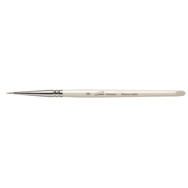 Finest sable hair, beveled hair bundle, thin flexible tip, round handle.