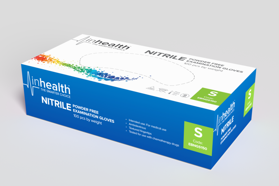 Inhealth Nitrile Powder Free Exam Glove – Small bx 100